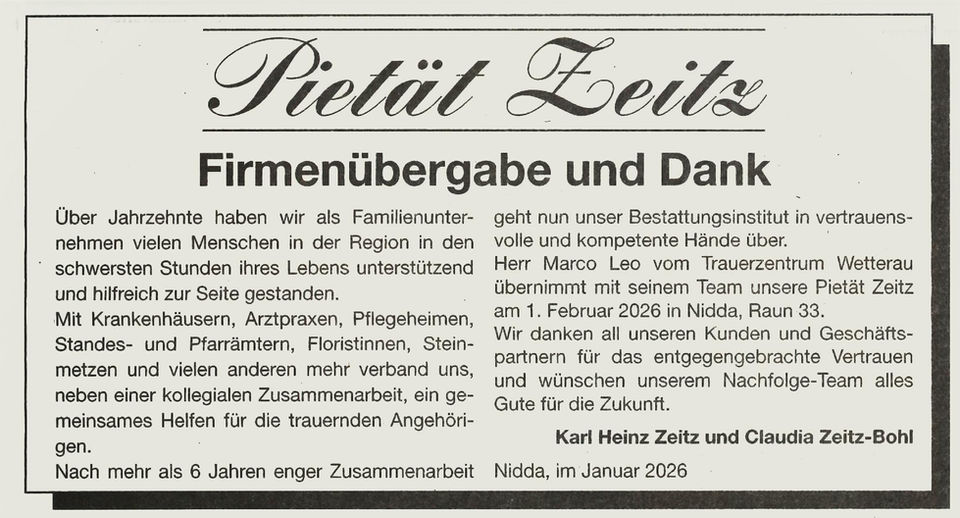 Wir möchten Ihnen in dieser schwierigen Situation zur Seite stehen, Ihnen helfen und unsere Erfahrung sowie unser Wissen anbieten. Ganz nach Ihrem Wunsch kümmern wir uns um Formalitäten, um organisatorische Angelegenheiten, um Kontakte. Dies leisten wir mit Engagement und Einfühlungsvermögen. Wir nehmen uns Zeit, Zeit für ein Gespräch und Zeit für den gesamten Ablauf einer Bestattung.